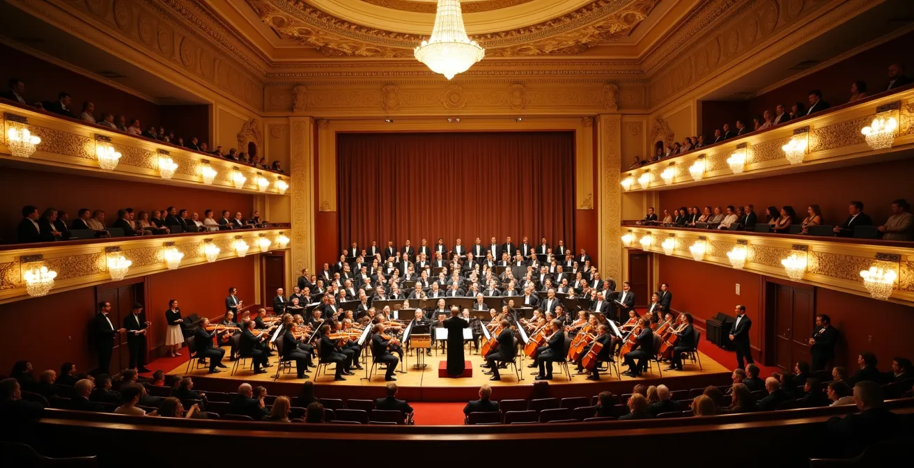 Pour une première expérience, le centre du premier balcon est souvent recommandé. Il offre le fameux « point d’écoute de l’ingénieur du son », où l’équilibre entre toutes les sections de l’orchestre est optimal. C’est la place idéale pour apprécier la richesse d’une grande symphonie dans son ensemble. Pour les plus curieux, les places de chœur derrière l’orchestre offrent un spectacle fascinant sur la gestuelle du chef et les interactions entre les musiciens, pour un prix souvent très abordable.