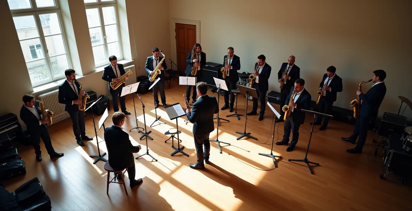 Gérer un big band n’est pas une question de talent brut, mais d’ingénierie orchestrale : une méthode claire pour structurer le son, la logistique et la dynamique de groupe.