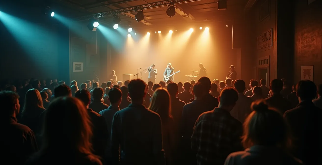 Vient ensuite le travail de répétition, idéalement dans un local dédié (certaines mairies ou MJC en proposent à des tarifs abordables). Ce temps est crucial pour forger un son et préparer un set live solide. Pour démarcher les salles, les bars et les festivals, un « Electronic Press Kit » (EPK) est indispensable. Il doit contenir une biographie, des photos, des liens d’écoute, une fiche technique et un plan de scène. Enfin, il ne faut pas hésiter à viser les tremplins et dispositifs d’accompagnement, comme les Inouïs du Printemps de Bourges, qui peuvent offrir une visibilité et un soutien précieux. Le chemin est long, mais chaque concert, même dans un bar devant dix personnes, est une étape pour construire son projet et, peut-être, viser un jour le statut d’intermittent du spectacle.